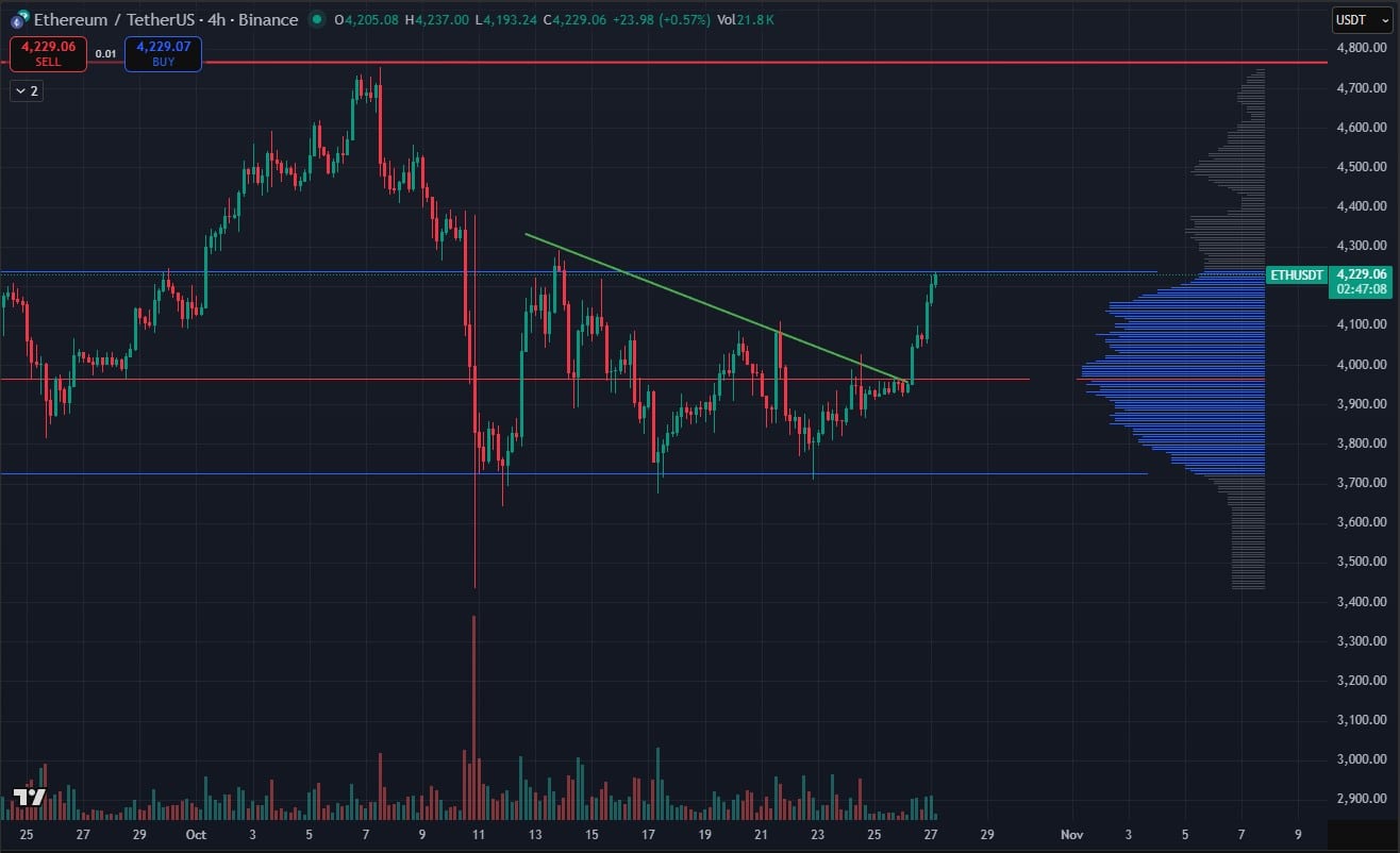 The ETH/USD price broke above $ 4,000 amid the good news, which was technical and philosophical resistance. The POC line of the Volume Profile shows that demand around the breakout zone is significant, which could lay the foundation for a contest of the ATH.